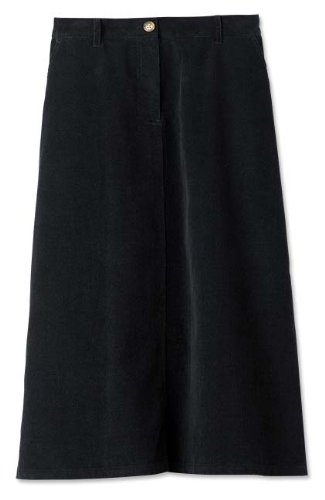 Our plush finewale cotton corduroy feels like velvet, making it a great choice for this classic trouser skirt. Zip-fly front, belt loops, slash pockets, and side back elastic inserts for fit. Corduroy skirt in black, navy, cappuccino. Pure cotton. Washable. Imported. Sizes: 6-20; about 27" long.